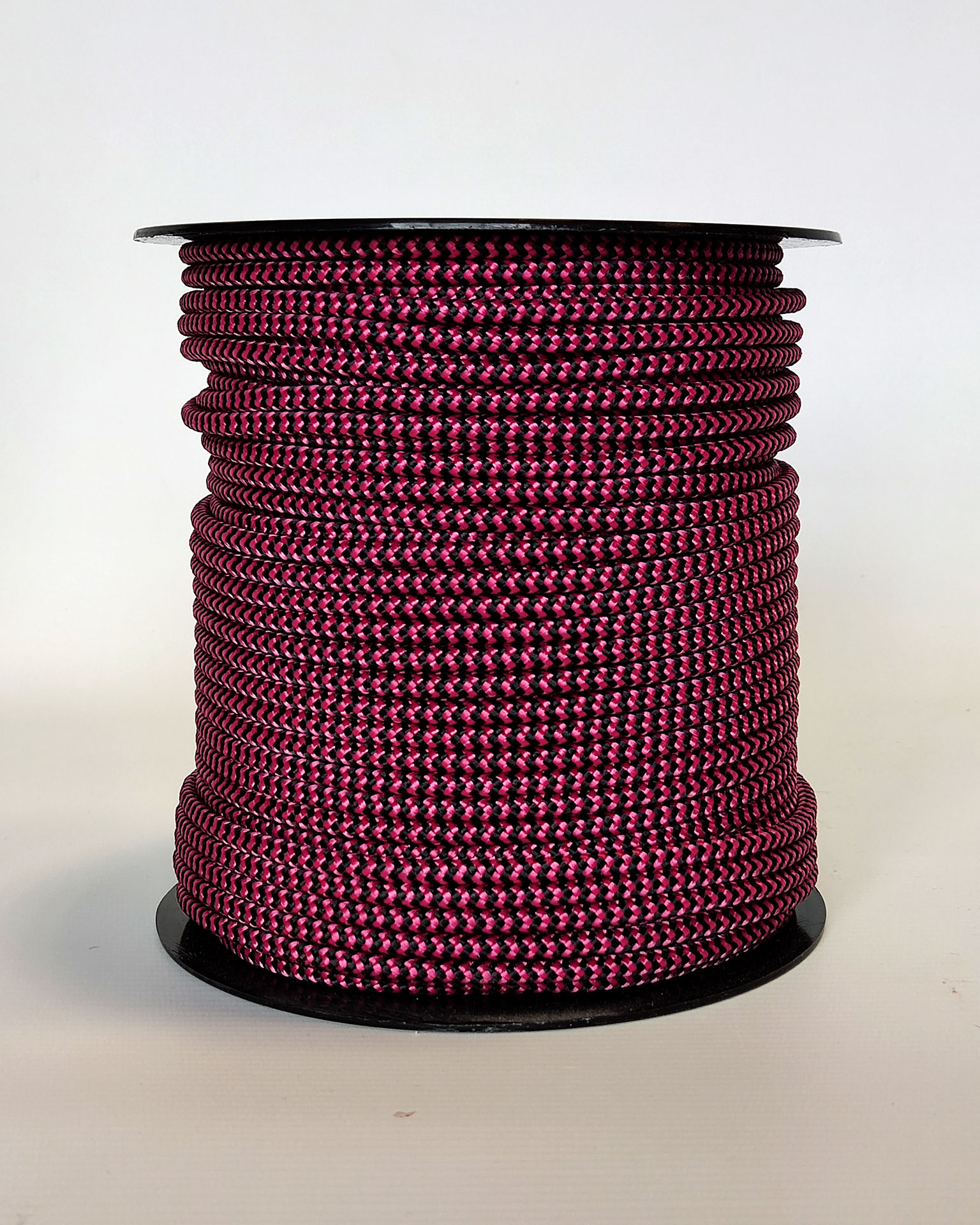 Cuerda tambor yembé reforzada PES 5 mm Zigzag Frambuesa / Negro 100 m