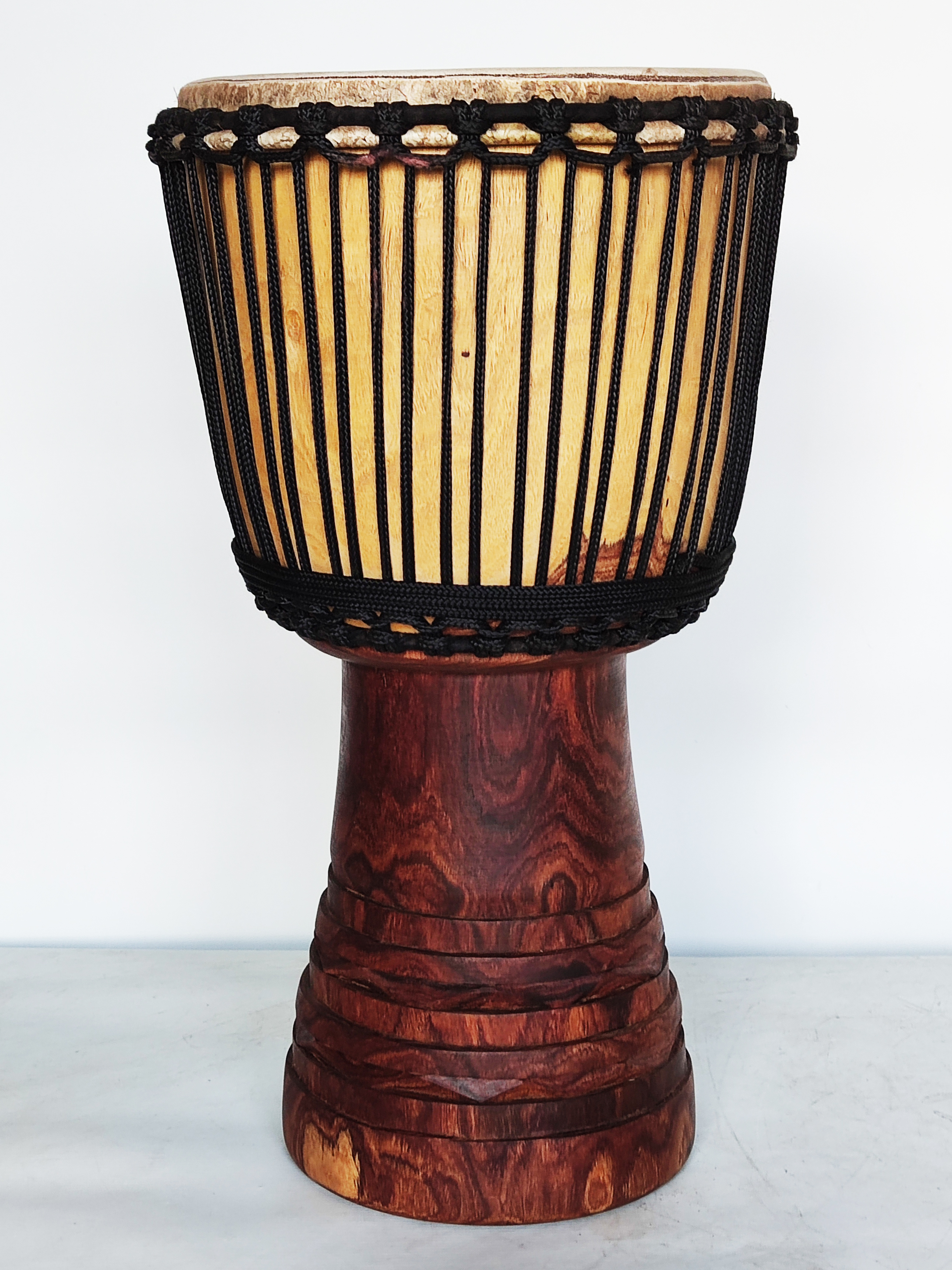 Instrumento tradicional de alta calidad, realizado con utensilios de precisión, el yembé Malí Premium es el resultado de la alianza entre la maestría y las herramientas y técnicas de precisión modernas.